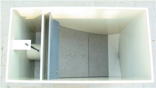 Het water en de vuildeeltjes komen binnen bij A en stijgen tot ze over de instelbare wand (B) vallen. Het water gaat vervolgens door de zeefbocht (C). Het vuil zakt naarmate er meer op komt te liggen steeds verder naar beneden waar het in een afvoergedeelte (D) komt te liggen. Bij de afvoer uitlaat (E) kan men een schuifafsluiter monteren om het vuil eenvoudig weg te spoelen met water.